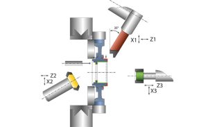With the new JUMAT 6S 18-20-18, the engineers at JUNKER have once again managed to extend their current portfolio. The new machine guarantees maximum quality through complete grinding in a single clamping set-up with an extremely short grinding time, thanks to the simultaneous use of three grinding wheels. All wheelheads feature a separate X and Z axis which enables workpieces to be ground simultaneously with all three grinding wheels. One grinding spindle ensures precise taper and plane surfaces (Z/X1), another takes care of the shoulder (Z/X2), while the last spindle grinds the internal diameter and shoulder (Z/X3). Further advantages include the redevelopment of the gearwheel grinding, which is based on the use of a perfect workpiece support. This is achieved through the center clamp, consisting of hydrostatic bearing and precision power chuck. This enables the workpiece to be ground simultaneously and on both sides.