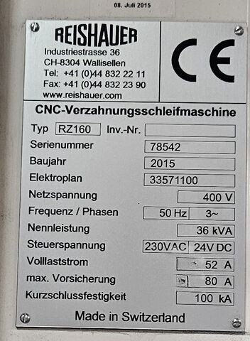 REISHAUER RZ 160 CNC Gear Grinding Machining – Year 2015